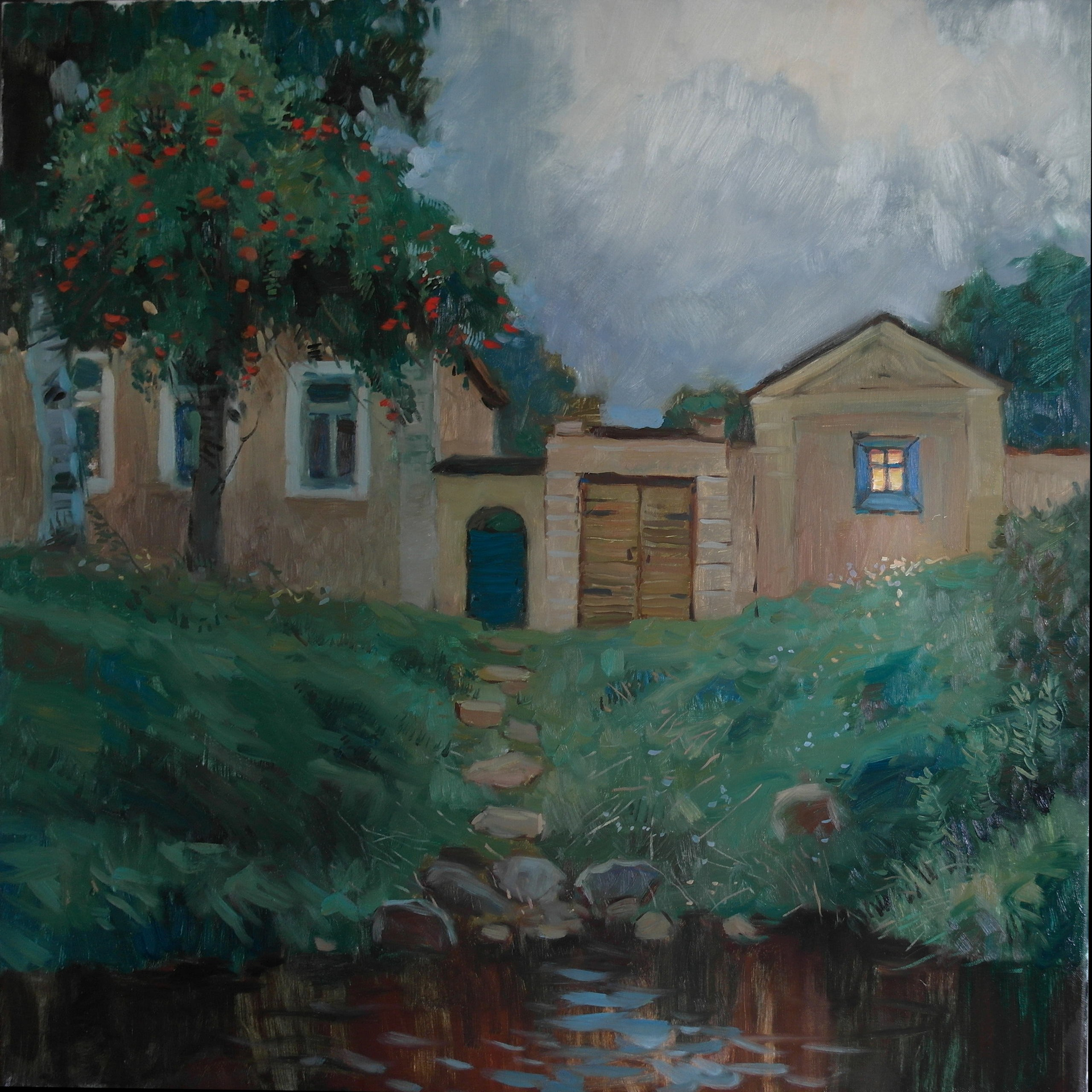Вечер. Рябина в Торжке - 80х80 см , холст масло